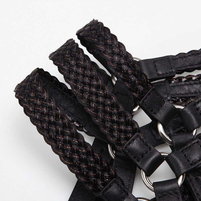 ・中央の丸い部分に前足を両方入れてからベルト部分を上げて着用してください。