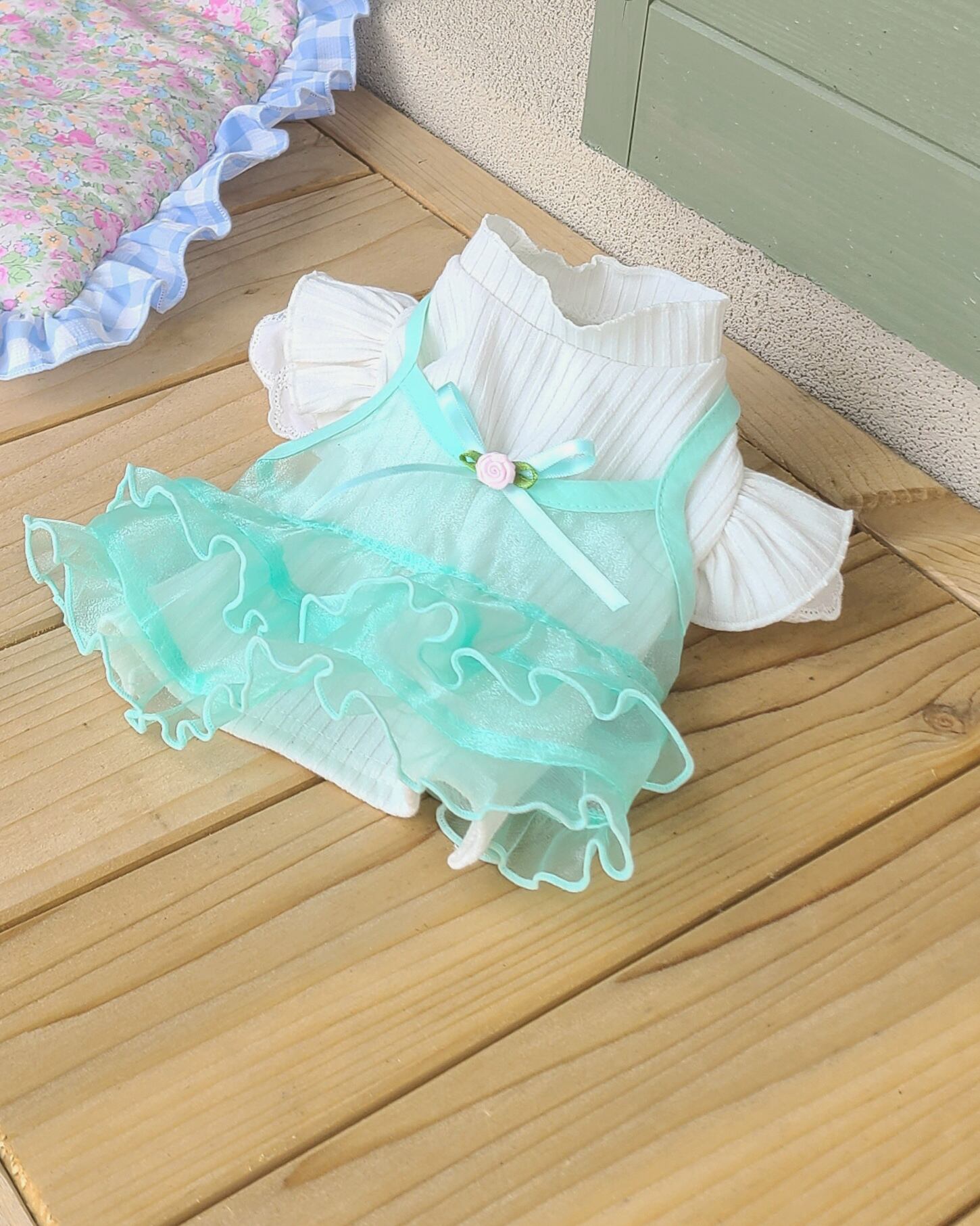2段のラッフルとバスト下にフレアに広がる裾がかわいいです。