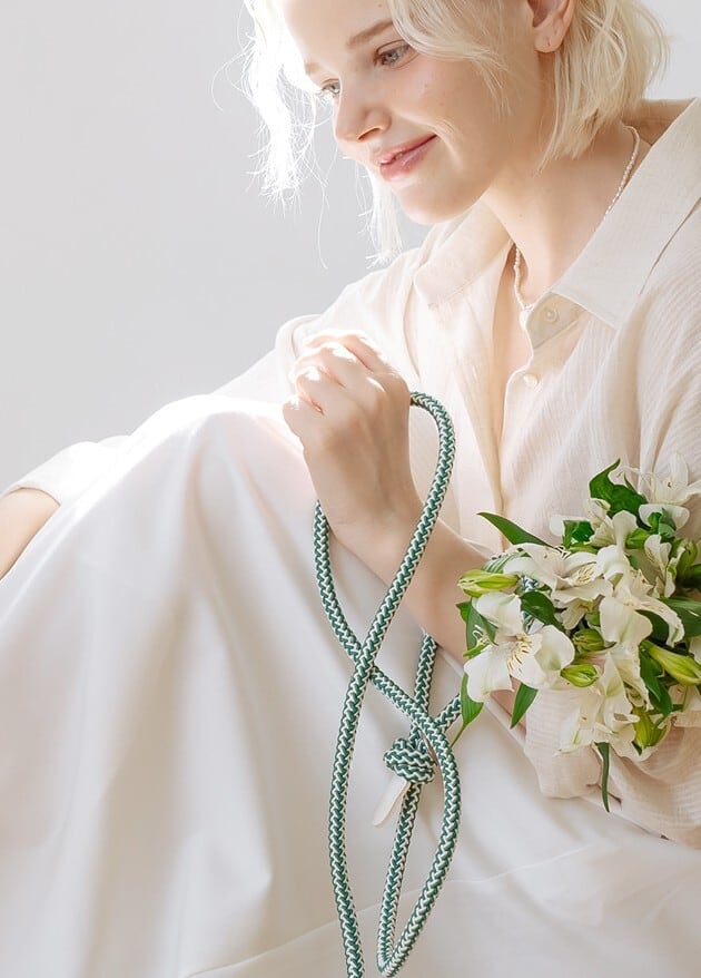 結び目を外すことなく、1本だけわっか側に引っ張ると持ち手部分の長さが伸び全体長が短くなります。