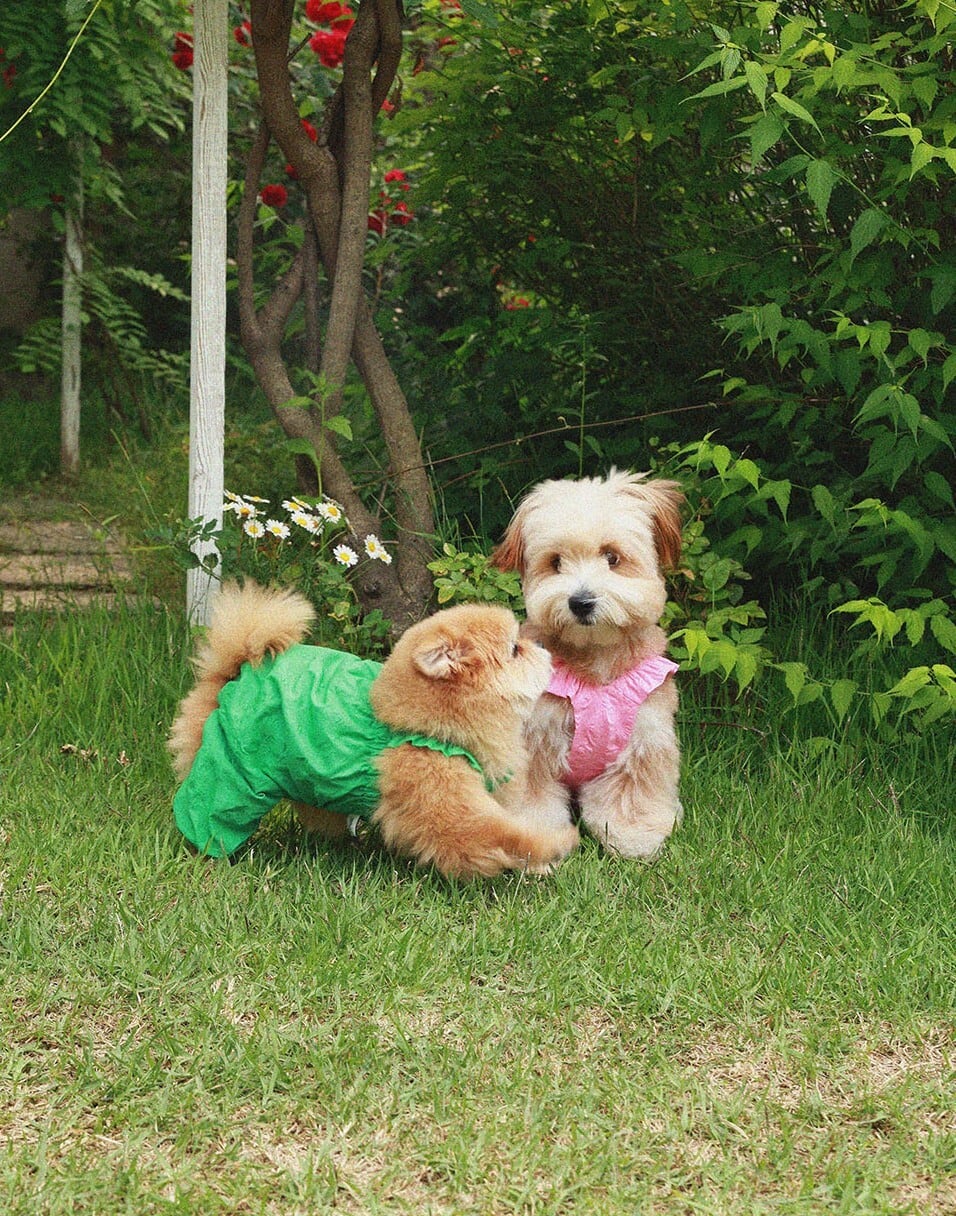 Model (Mongttang /Mix) is wearing size L / Neck: 28cm / Chest: 38 cm / Back length: 31cm / Weight: 5kg
