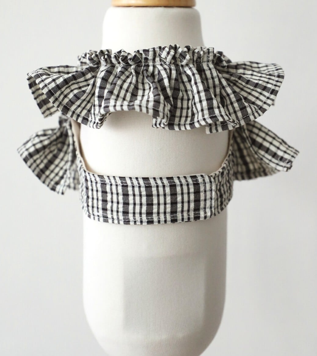 ohdibsだけの感性が光るパターンと、まるでケープを羽織ったような2段フリルのディテールが魅力のアイテムです。