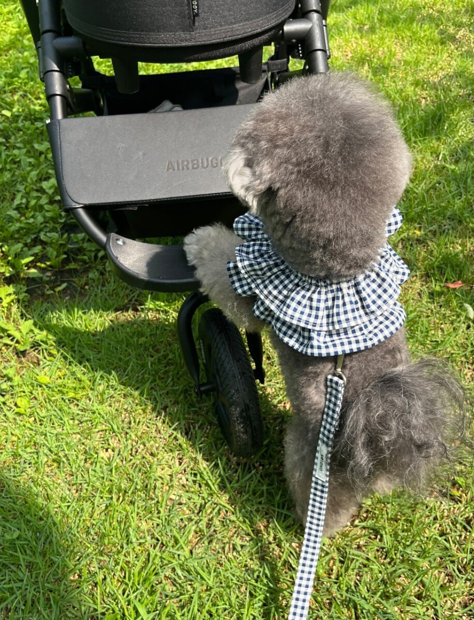 トレンド感のあるネイビーカラーは、どんな毛色の子にもぴったり!