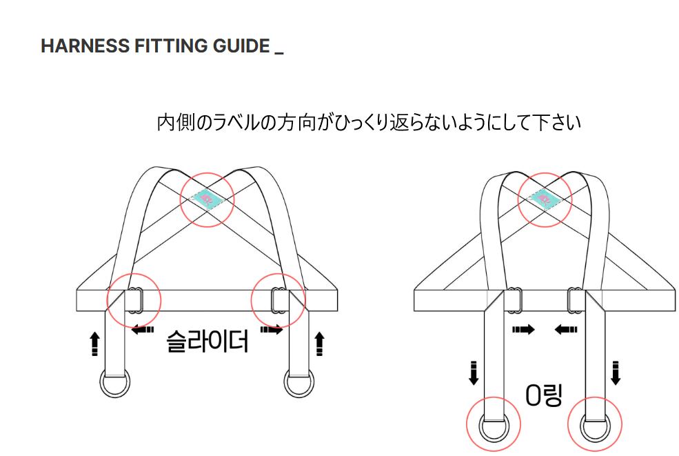 アロハハーネスは、バックルなしでも着用できる自動調節タイプのハーネスです。