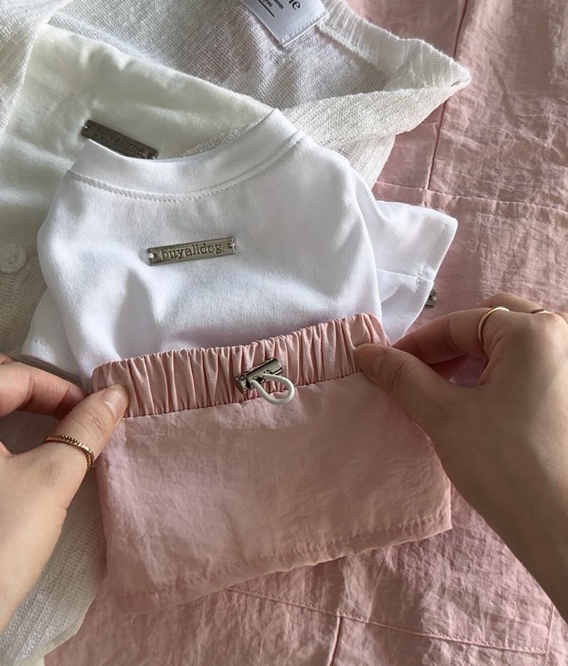 わんちゃんはベーシックTシャツとスカートをコーデ。