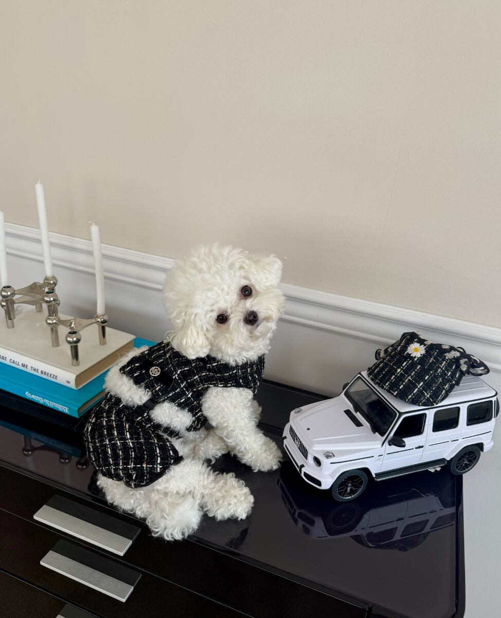 クラシックなツイード素材で仕上げた