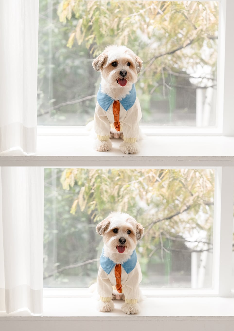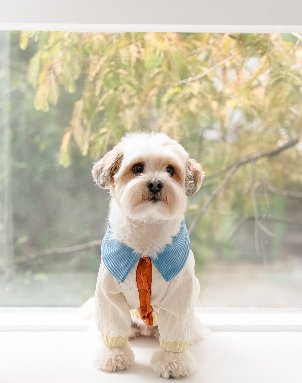 ワンちゃんの体にぴったり合うように直接描いた立体パターンで制作されています。