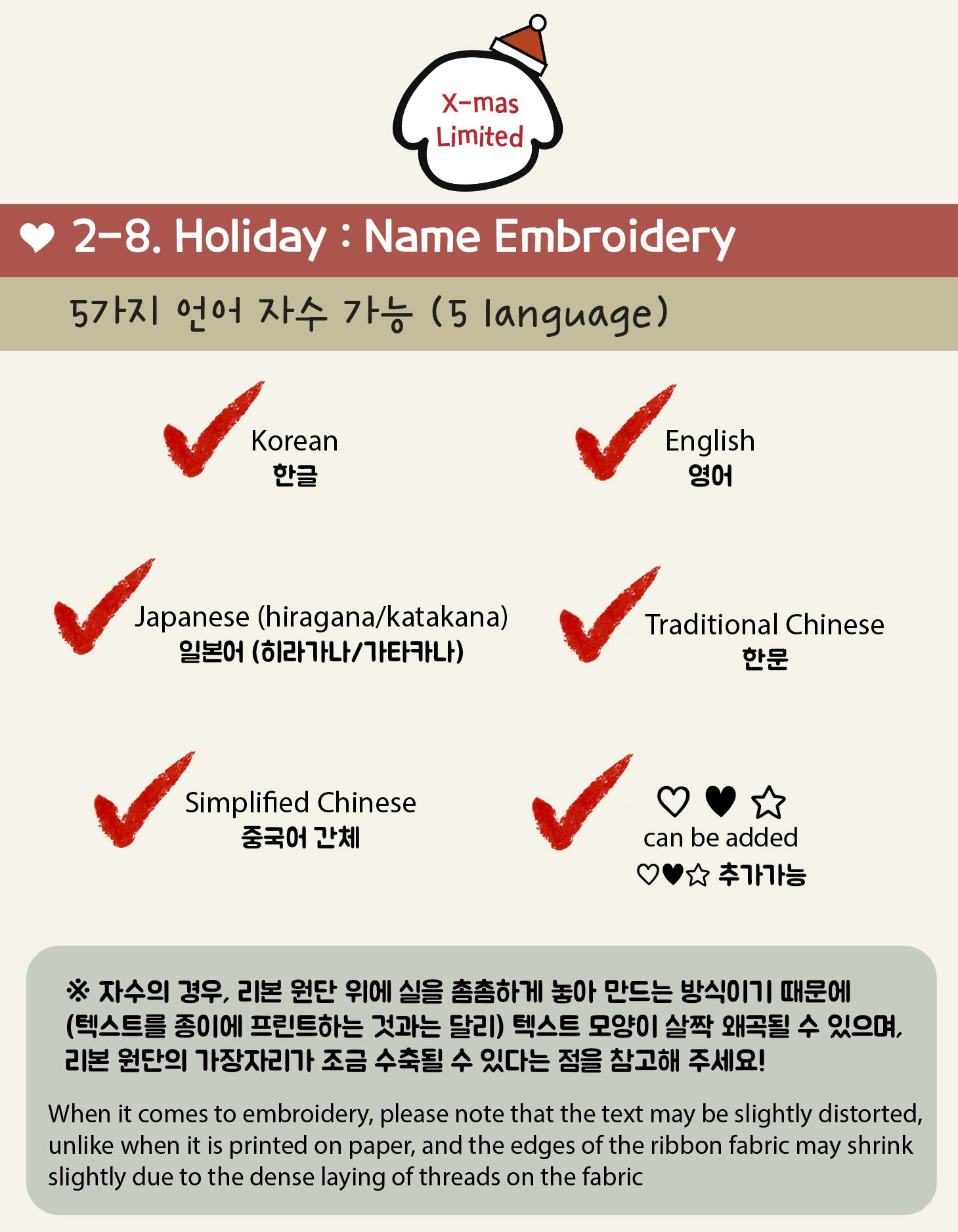 Ribbonは2行のみ刺繍対応可能です。