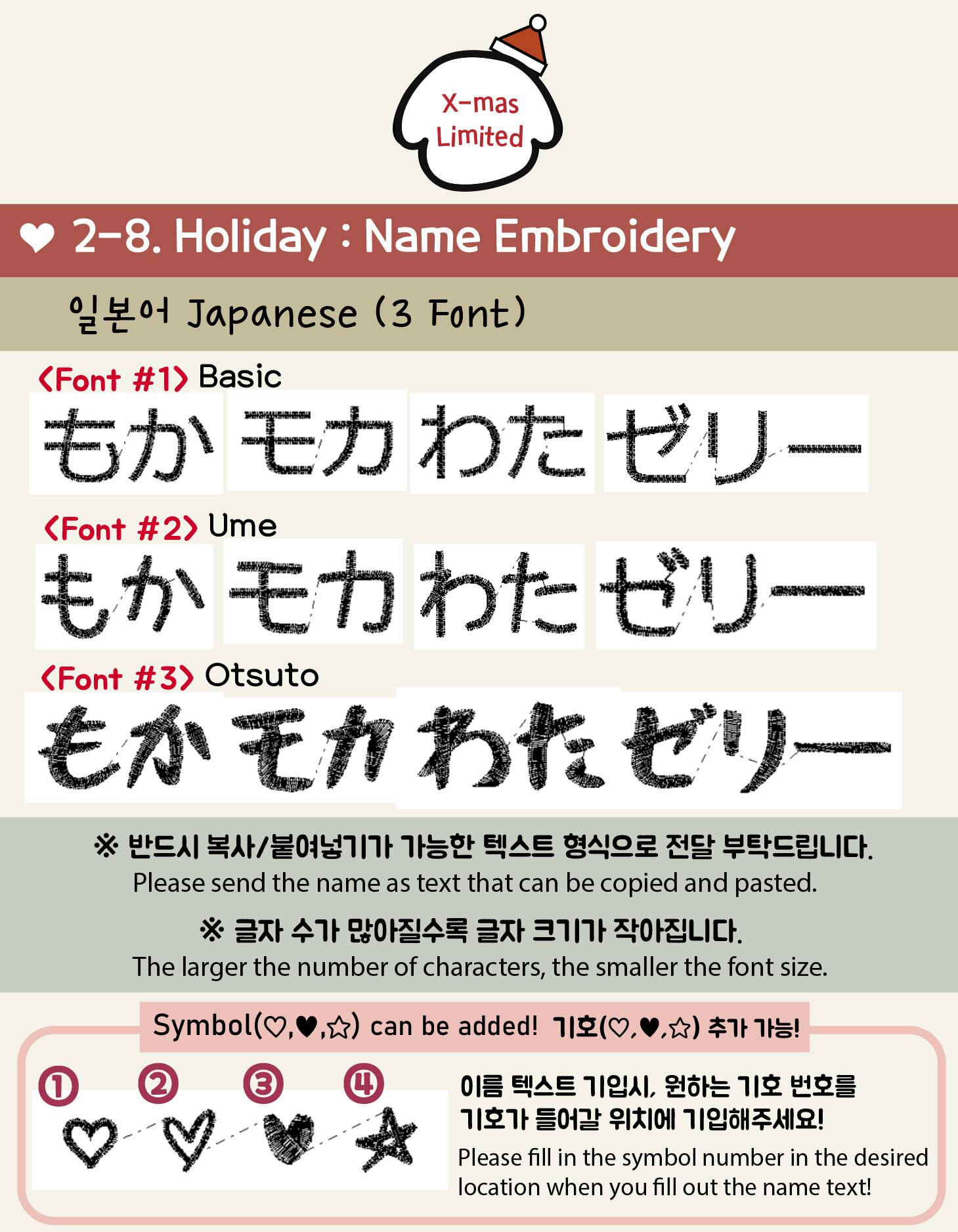 ※2025年SS迄は対応しておりましたが、刺繍が小さくなり文字のフォントが保てない為、2行に変更しました。