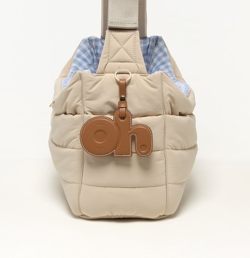 「oh」ロゴチャームは着脱可能で、好みの場所に付け替えできます。高さの調整も自由に可能です。