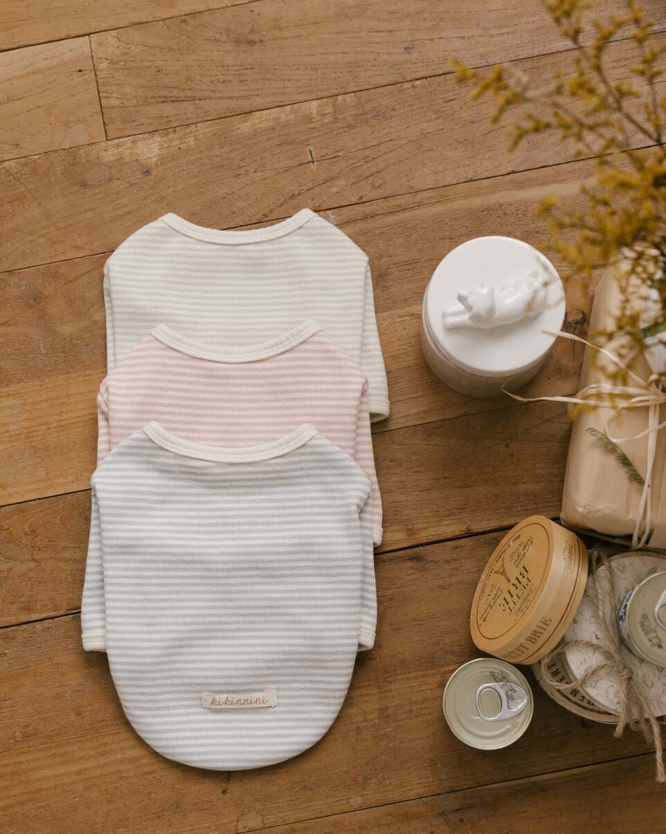 柔らかなパステルトーンのストライプ柄と