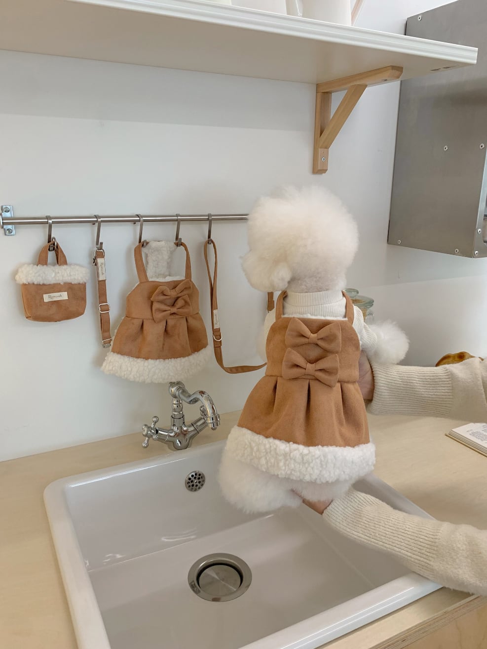 軽くて柔らかいファー素材で、負担なく着用でき、全体がボア素材の生地で体を包み込み、保温効果に優れています。
