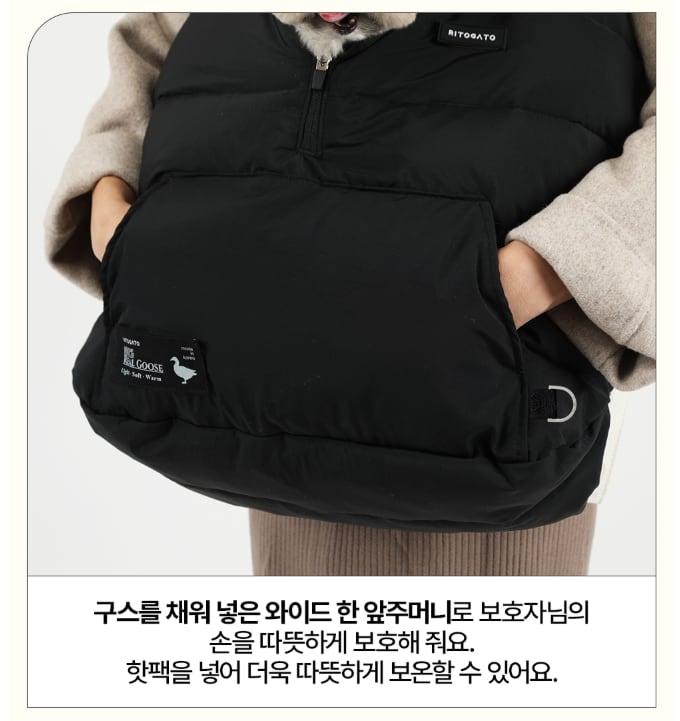 ● ふんわりグース入りのワイド前ポケット