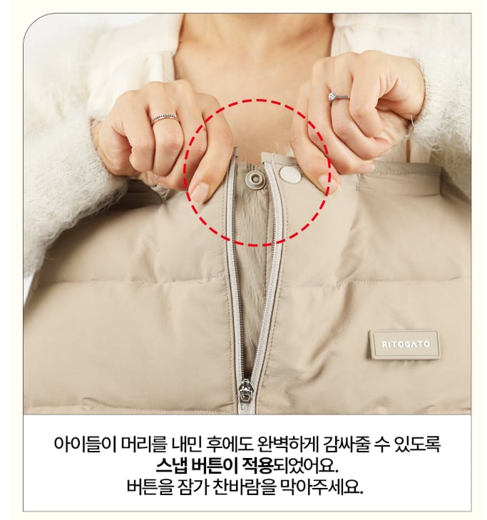 ● 頭を入れた後もぴったり閉まる“スナップボタン