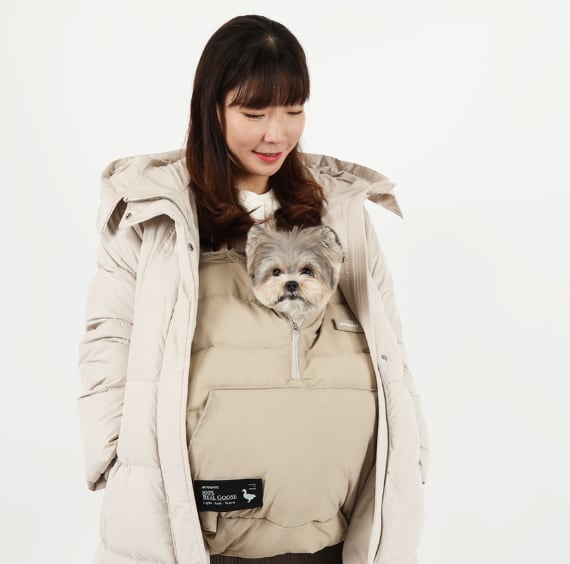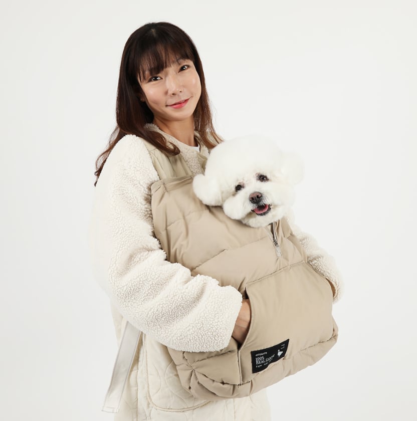 “デザインはそのままに、暖かさをプラス。愛犬の冬のお出かけスタイルが完成。”