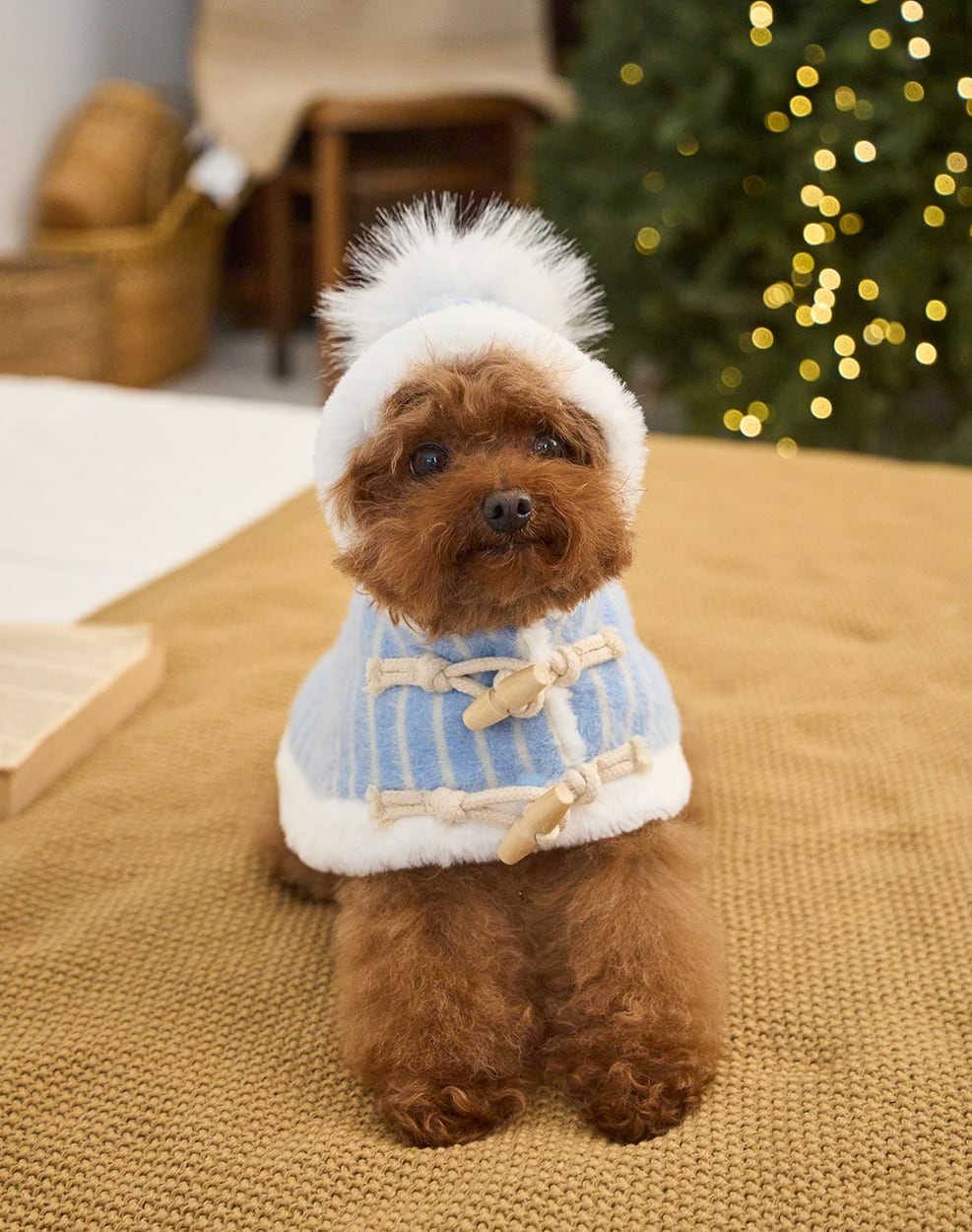 予約【eomuk】BPompom Hood Poncho (Blue)
