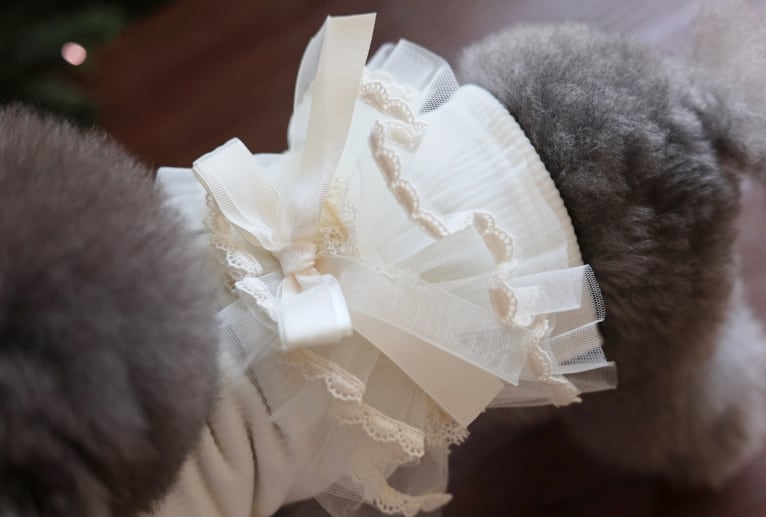 袖のファーや前面のキラキラはスワロフスキーで、とても可愛いポイントです。