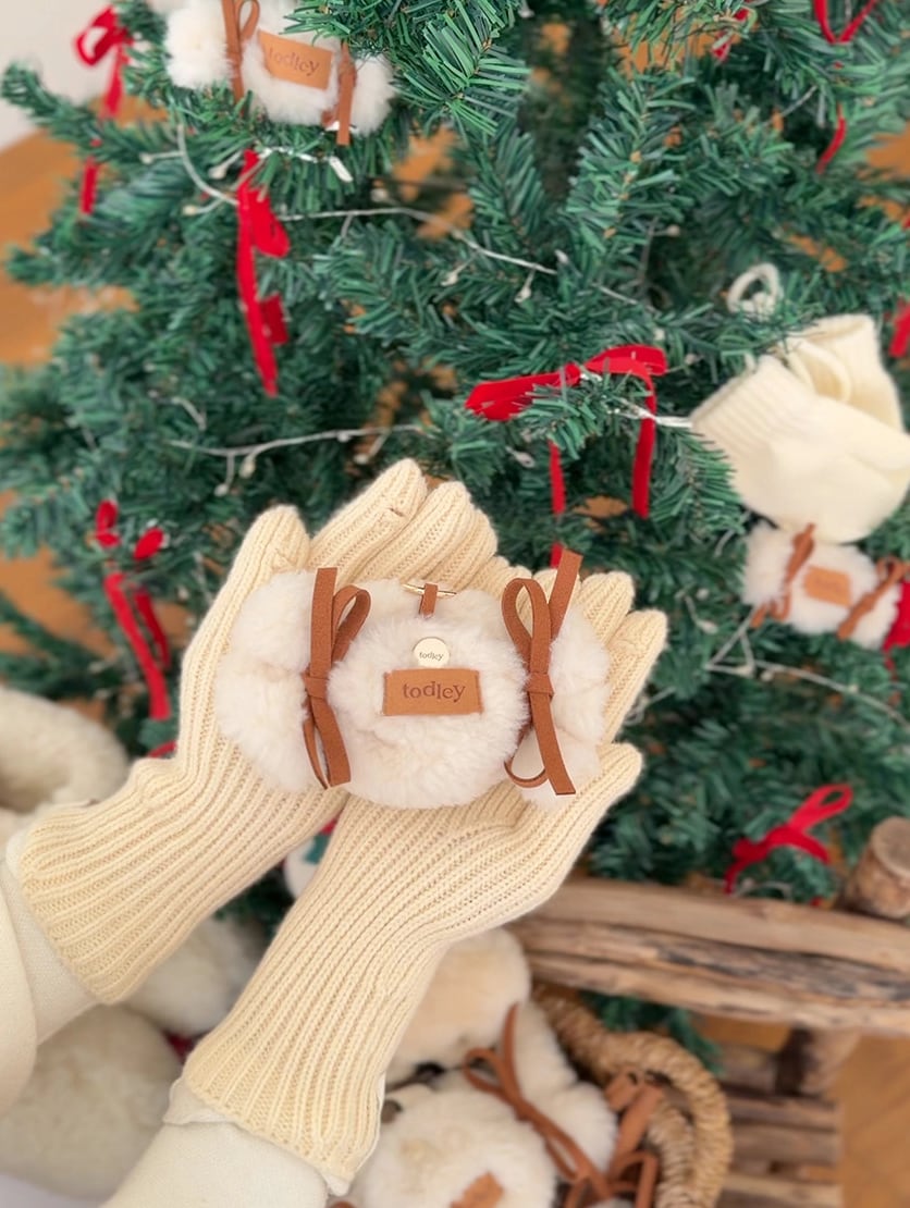 ふわふわのシープ調テクスチャーとリボンのポイント、