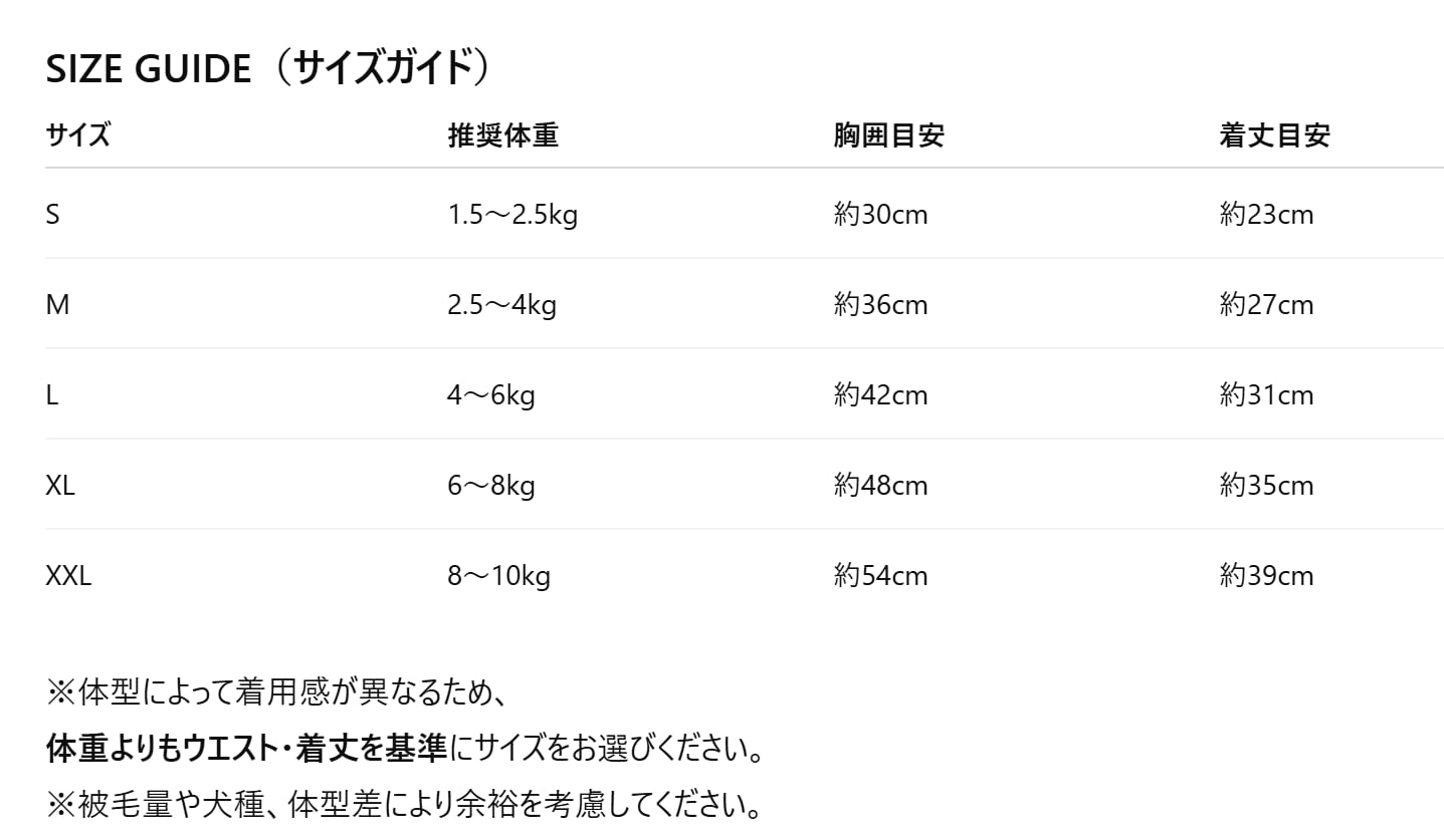 (モデル犬:ソルト XXLサイズ着用/ジェニ Lサイズ着用/シロ Mサイズ着用)