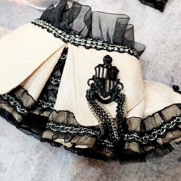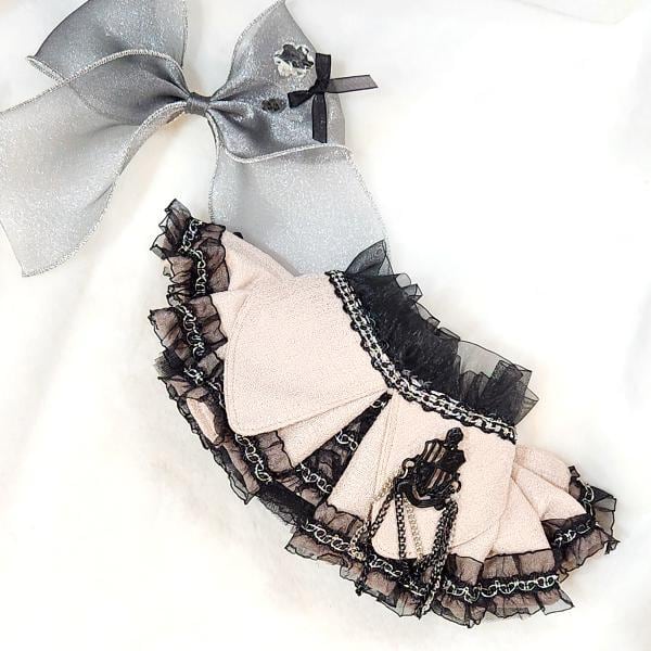 やわらかな生地に、ブラックのフリルとチェーンディテールを加え、
