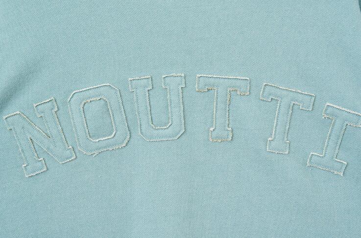 前面には同じ素材を使ったアップリケのNOUVETTEロゴ刺繍を施し、糸が解けたようなヴィンテージ風のディテールがポイントです。