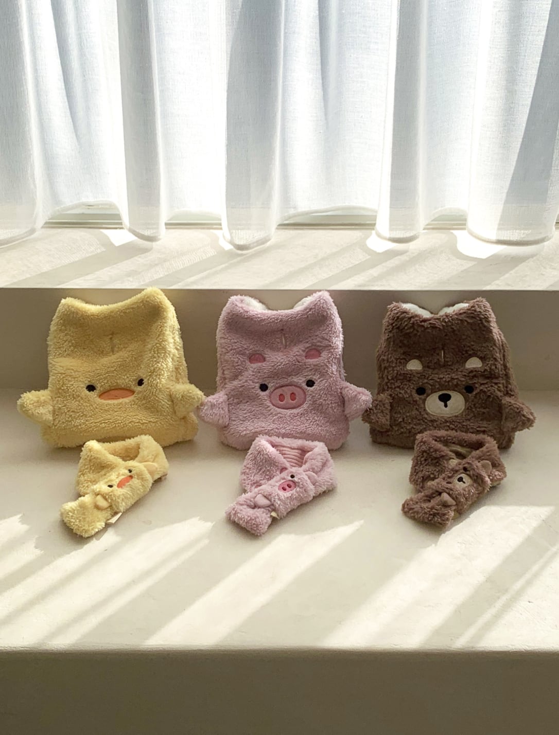 コーディネートされているアニマルフリースマフラーと一緒に着用すると、さらに可愛さアップ!