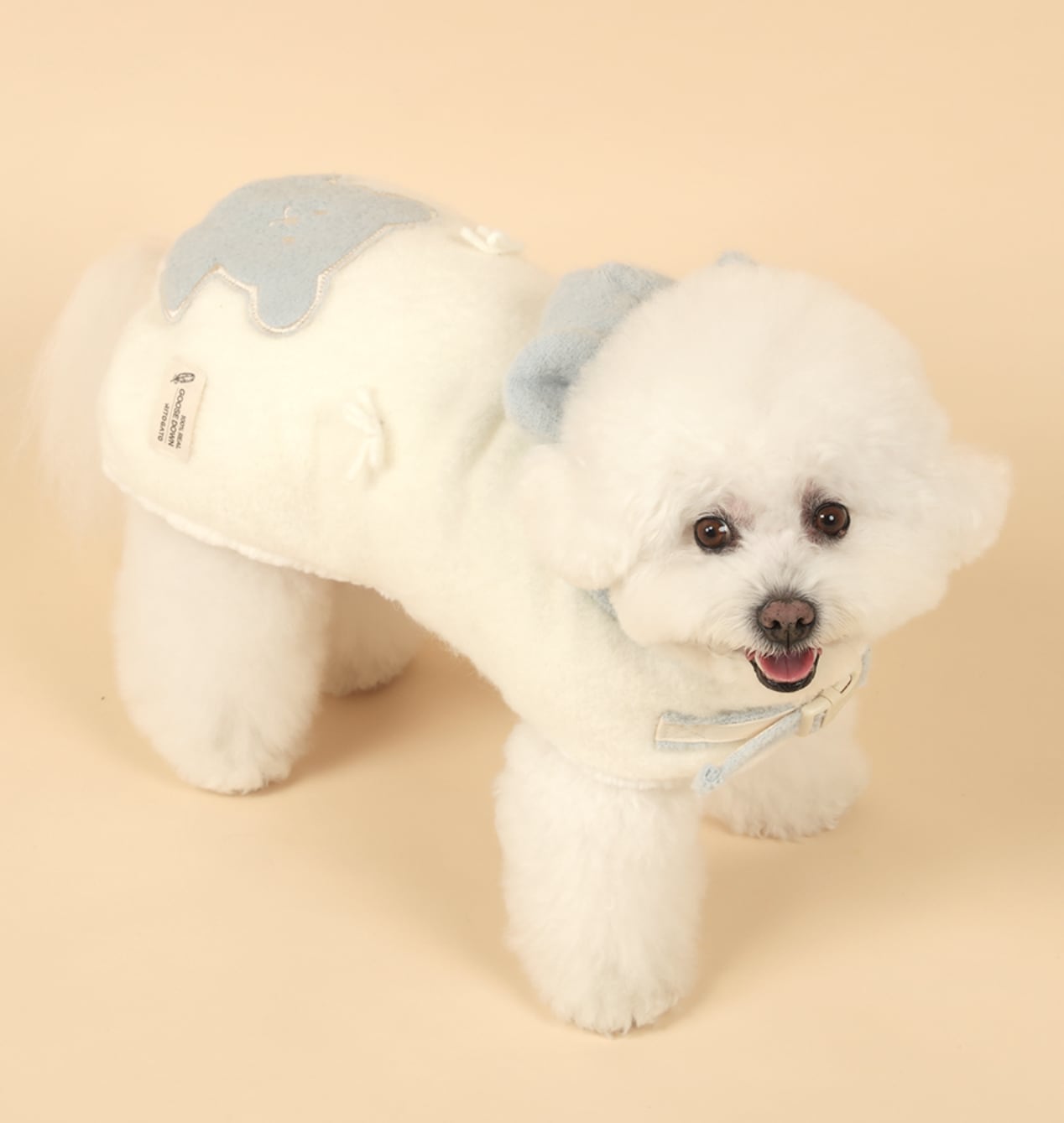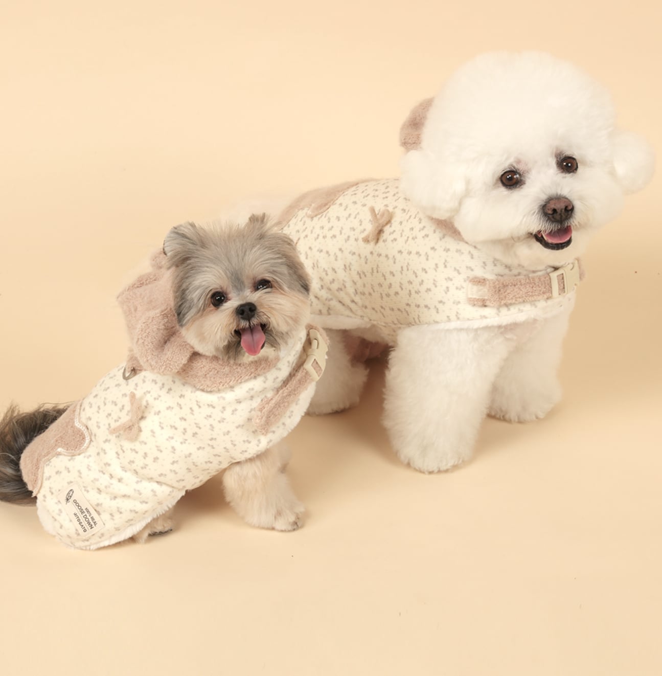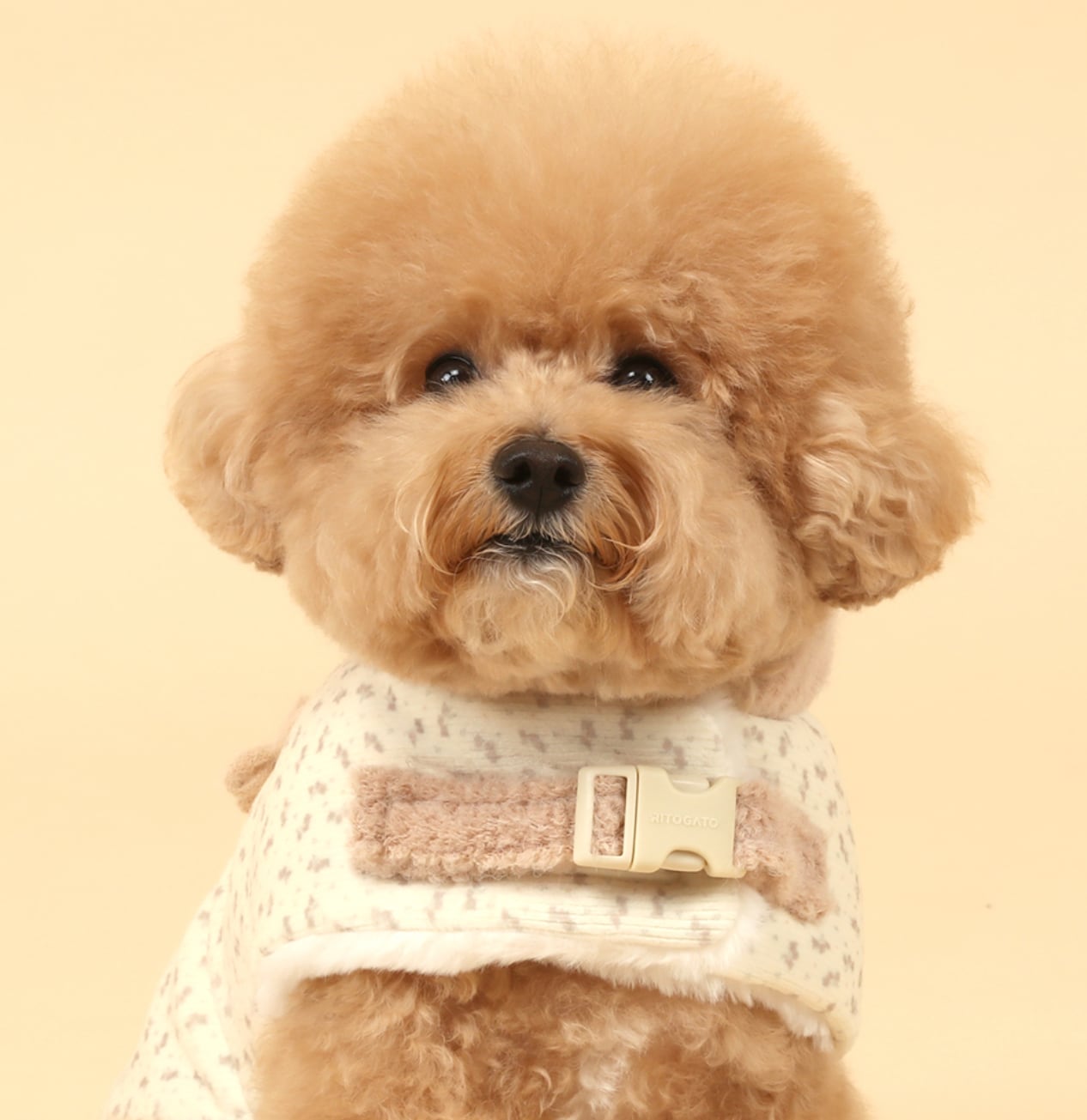 ワンちゃんの肌に直接触れる裏地には国内産のふんわりエコファーを使用。