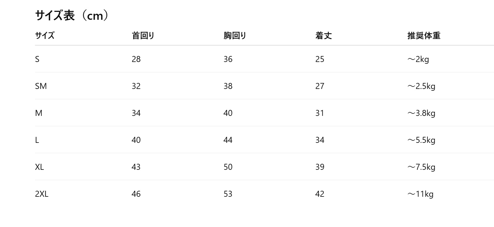 ・推奨体重以外の数値は、商品の実寸サイズです。