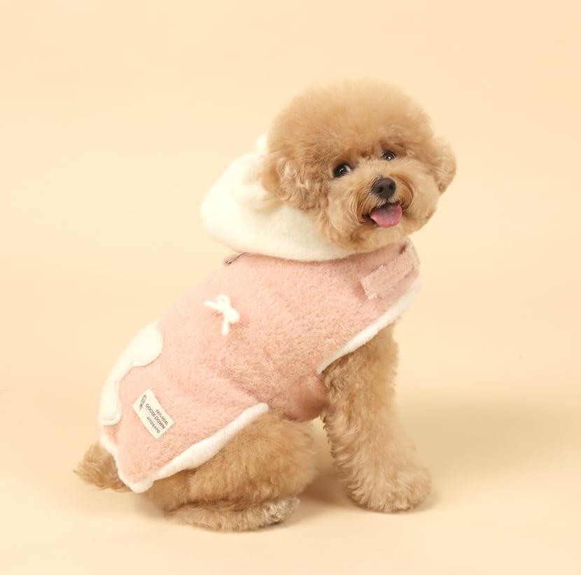 ワンちゃんの肌に直接触れる裏地には国内産のふんわりエコファーを使用。