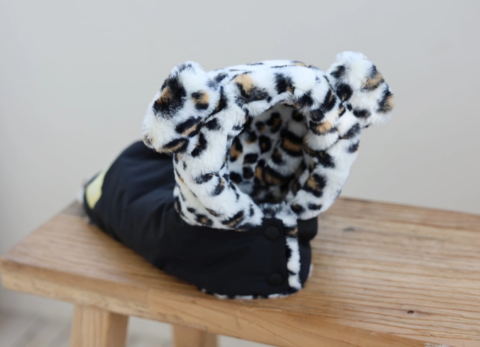 4オンスのダウンとパステルトーンのレオパードファーのコラボ