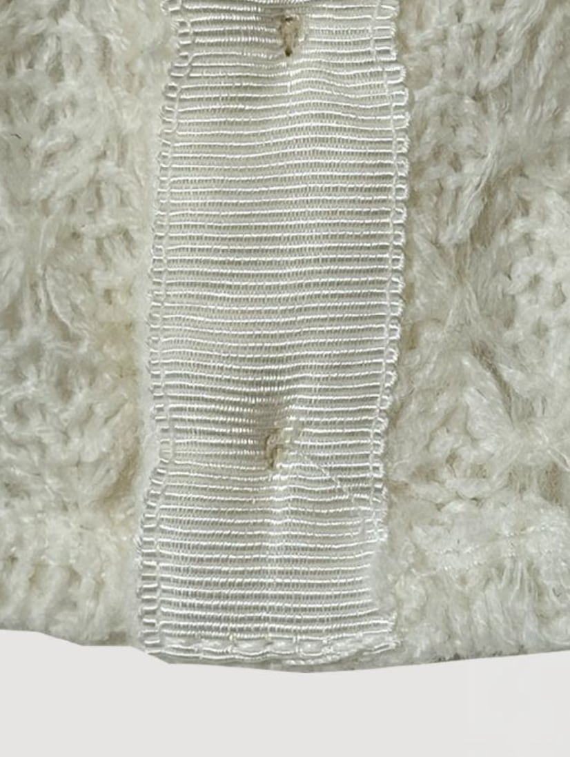 淡いクリームカラーと立体感のあるニット編みが調和し、