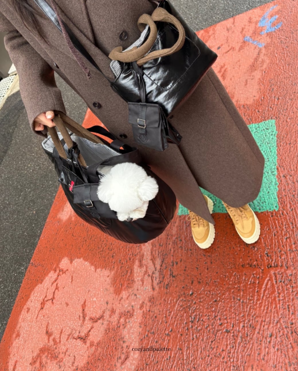Cozy & Palette(コジーアンドパレット)の代表アイテム「チーズバッグ」を、冬シーズン向けに再解釈したお散歩バッグです。
