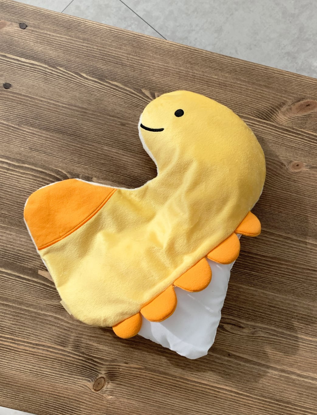 お子さまが頭を乗せたり、あごを楽に預けたりできる恐竜モチーフのピローです。
