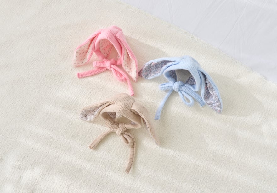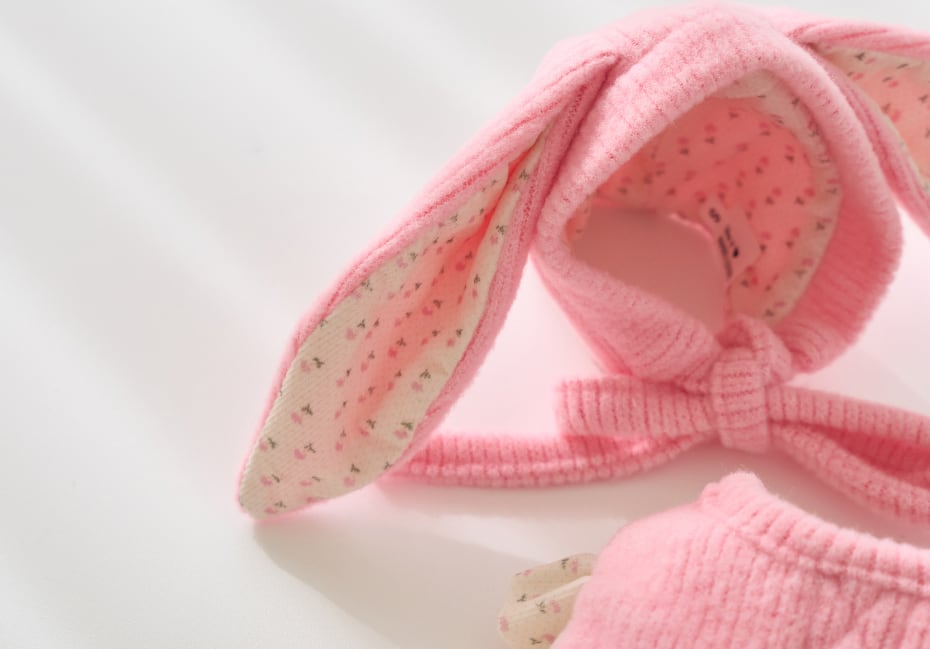 愛らしいパステルカラーに、かわいいうさぎ耳が付いた