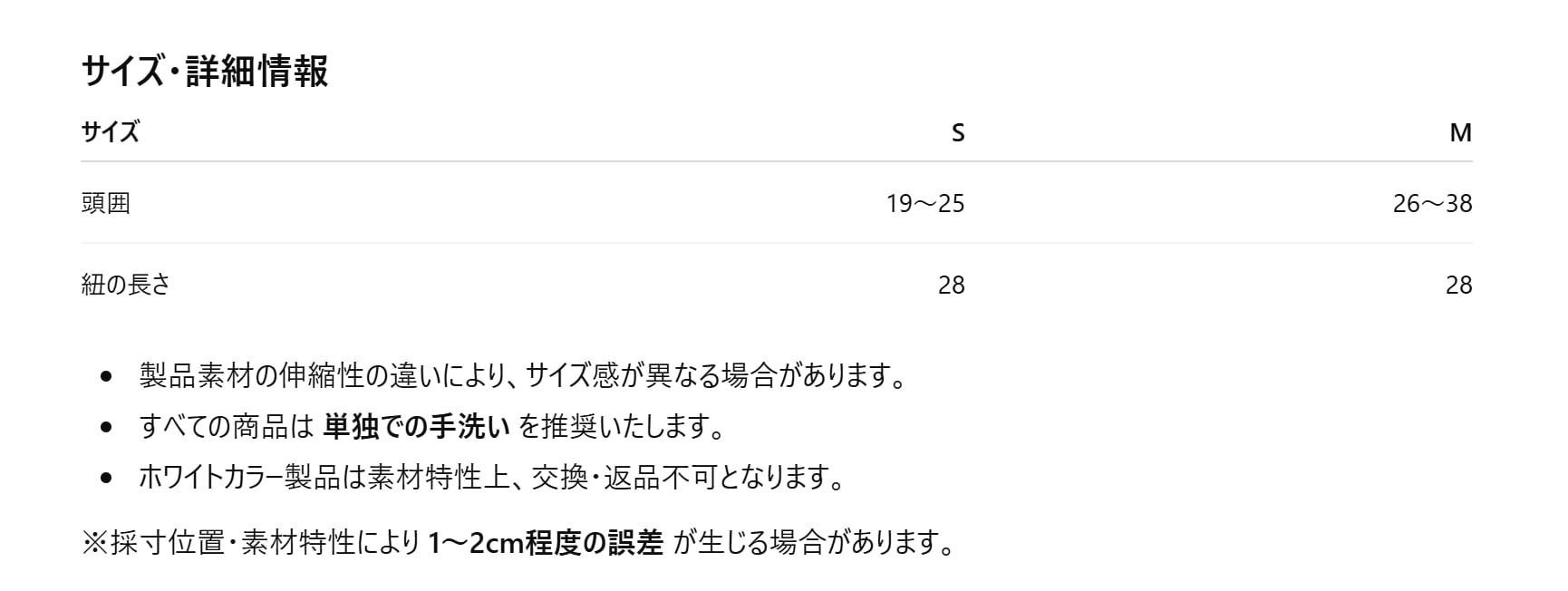 購入後、サイズが合わなかったなどのお客様都合での返品・交換は行っておりません。