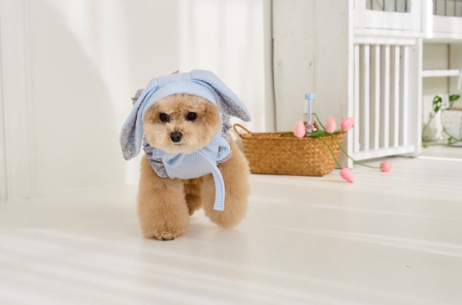 愛らしいパステルカラーに、かわいいうさぎ耳が付いた