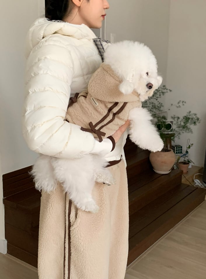 韓国国内生産の高級ボアフリースに、ソフトファーの裏地を重ねて製作しました。