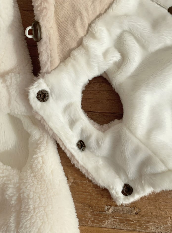 韓国国内生産の高級ボアフリースに、ソフトファーの裏地を重ねて製作しました。