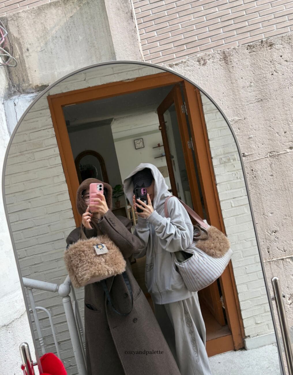 柔らかく暖かいファー素材を使用し、冬のアウターとも自然に馴染む、ぬくもりのある雰囲気