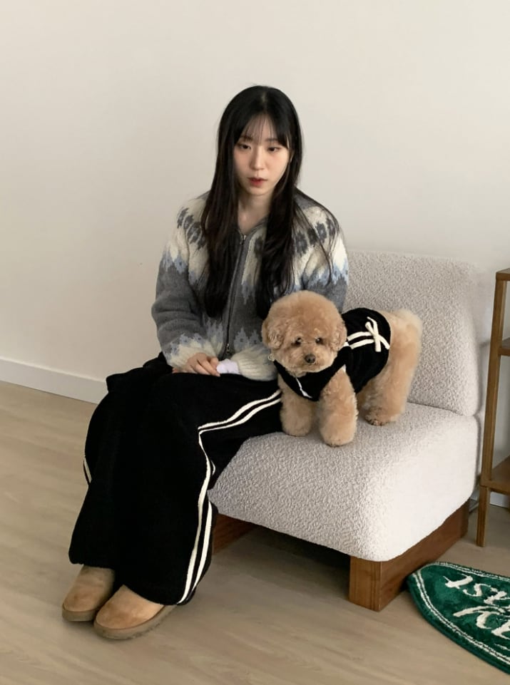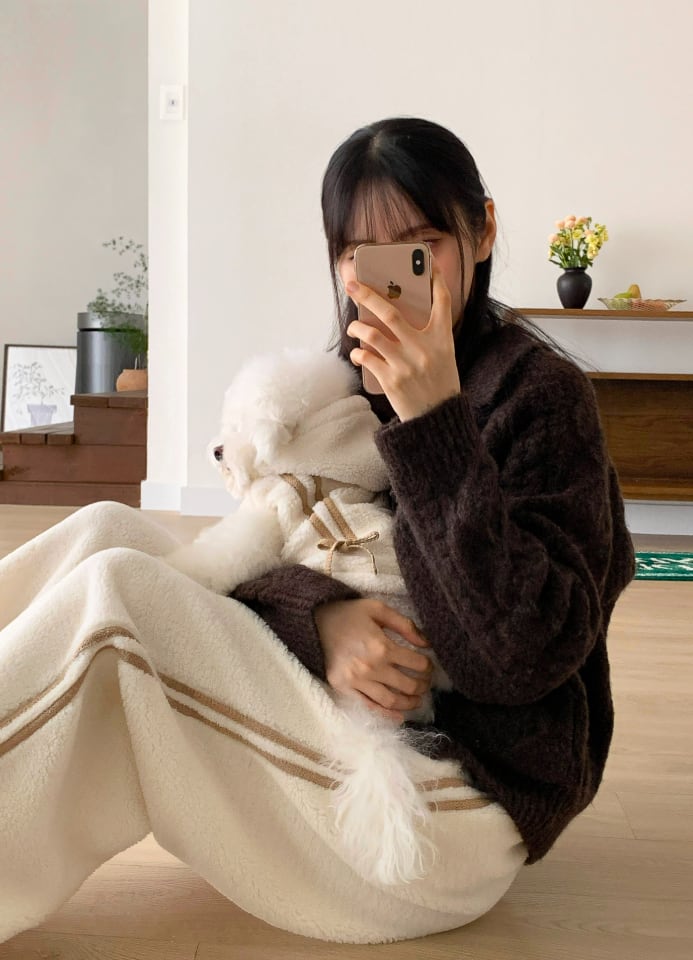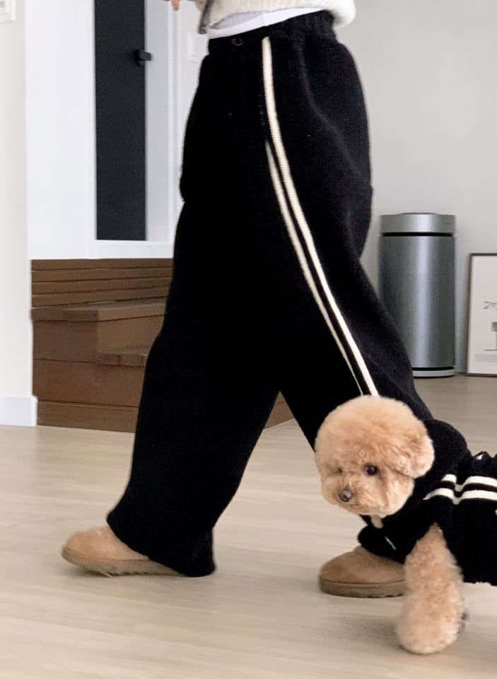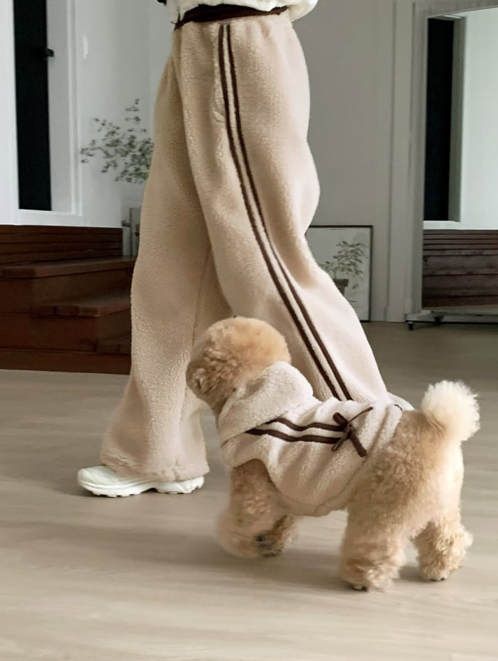 パンツのペアルックなので、派手すぎず負担なく、さりげなくセンス良くわんちゃんとおそろいコーデができます。