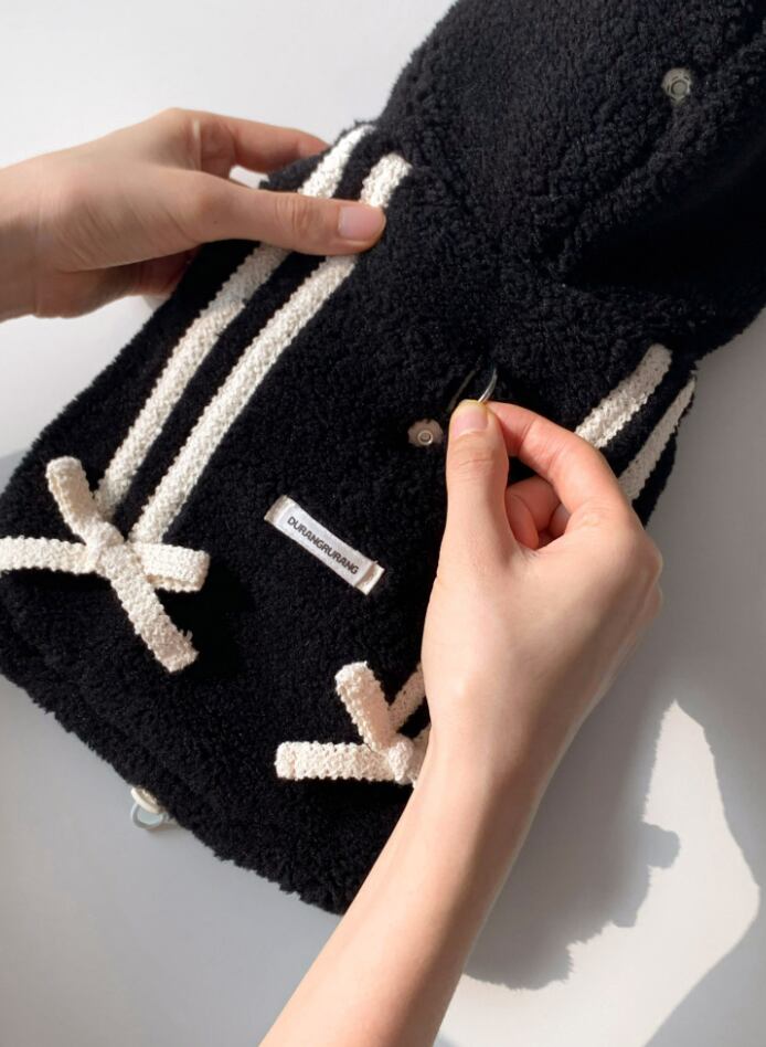 韓国国内生産の高級ボアフリースに、ソフトファーの裏地を重ねて製作しました。