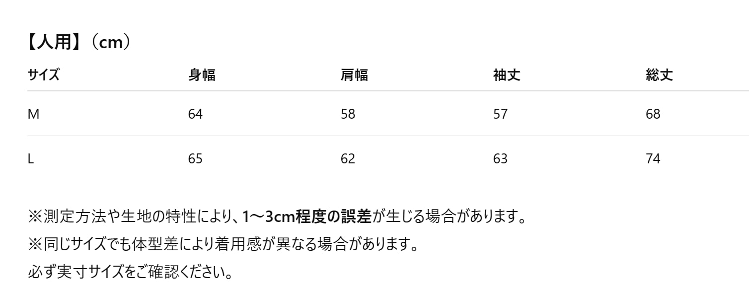 購入後、サイズが合わなかったなどのお客様都合での返品・交換は行っておりません。