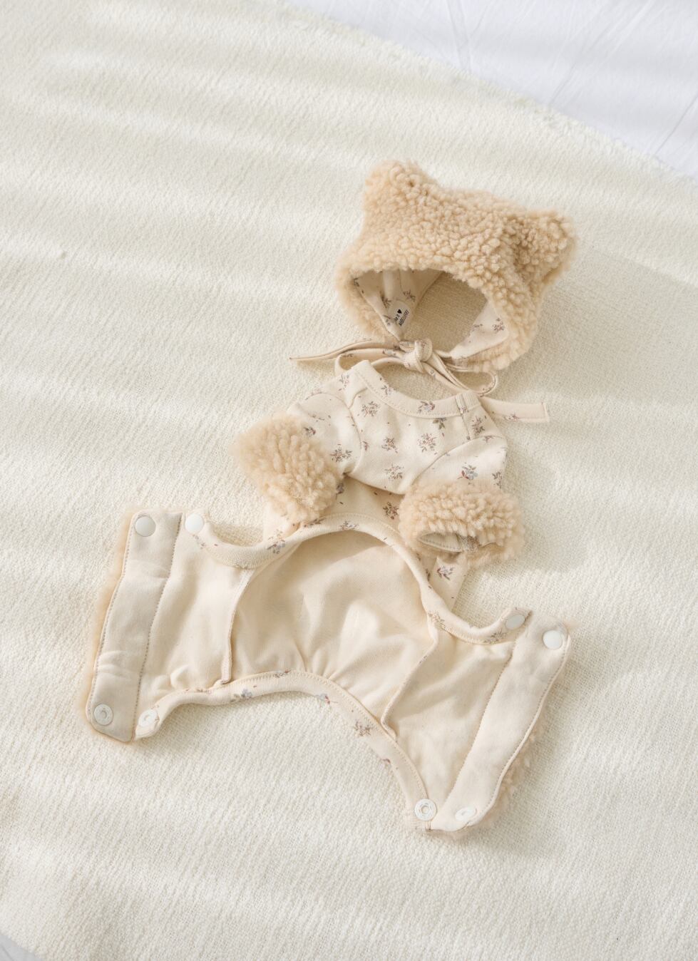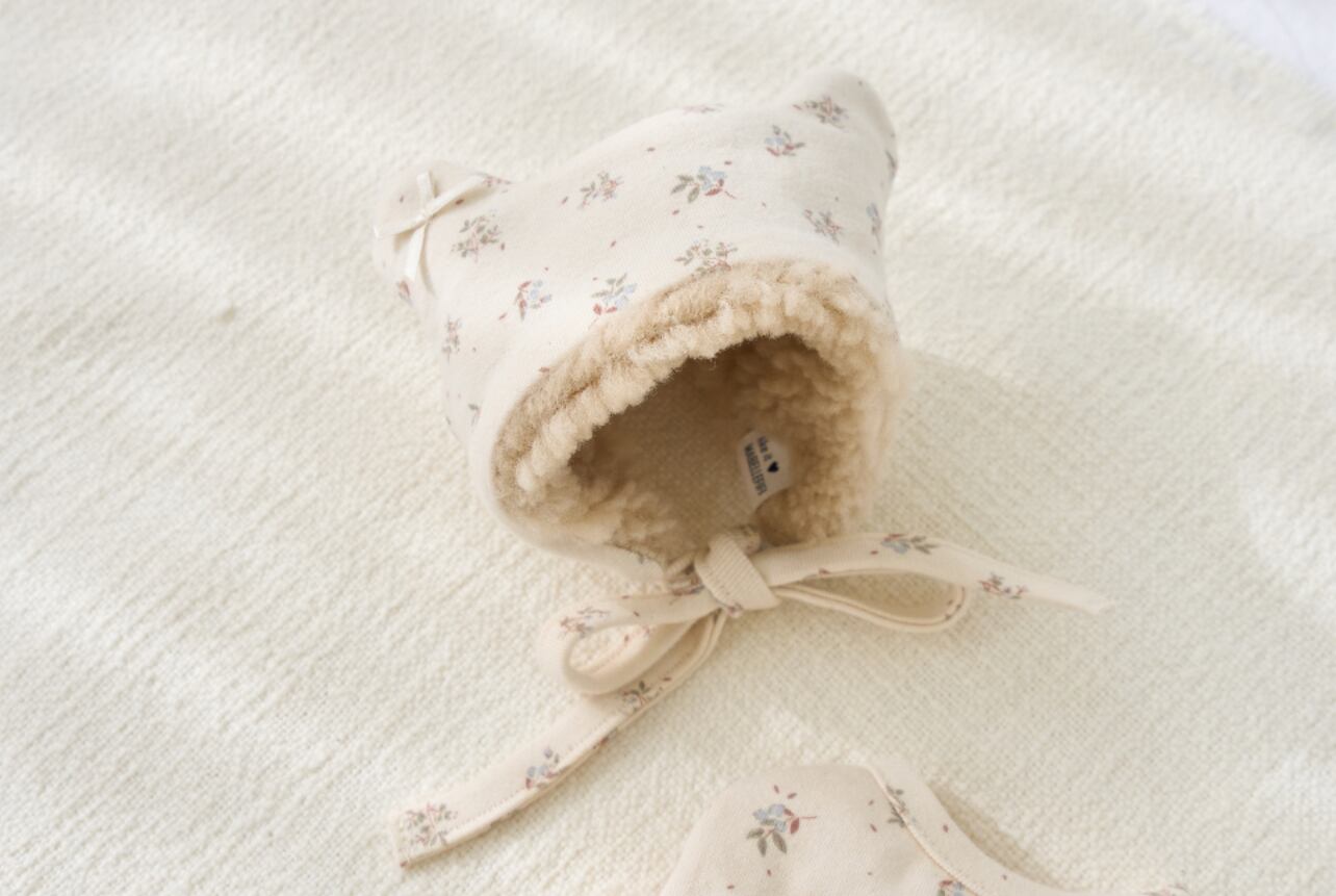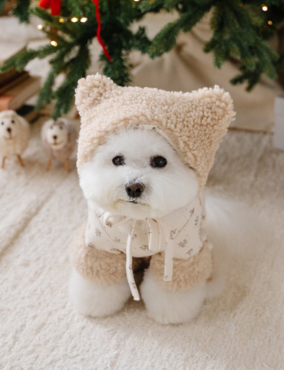 やさしいカラーと可愛い耳のデザインで、
