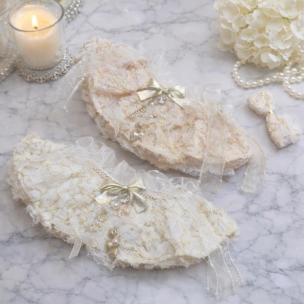 上品にきらめくゴールド刺繍と繊細なレースディテールが、