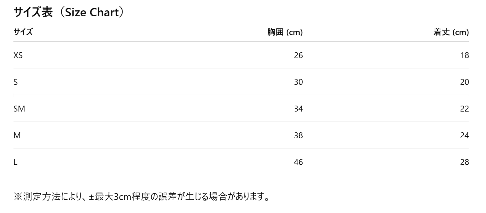 胸囲:32cm / 着丈:26cm