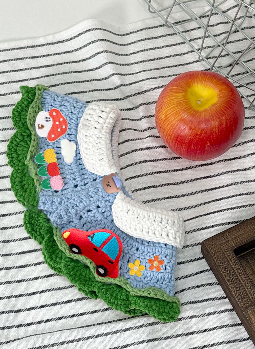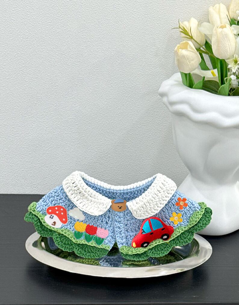 車・飛行機の人形、フラワー、きのこ、お家など様々な副資材を使用し、より可愛く愛らしいムードをたっぷり感じられるケープです!!