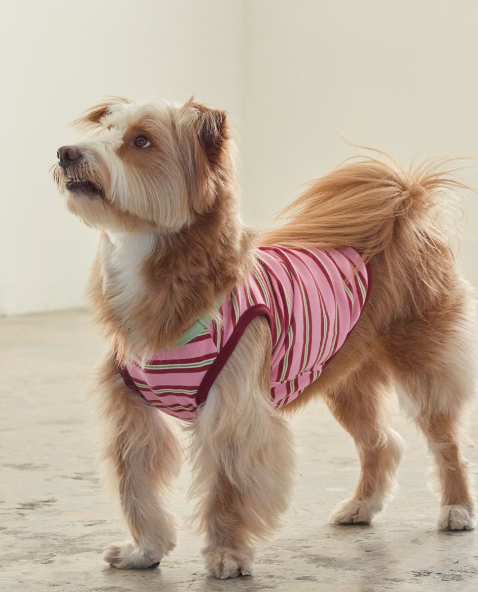 XL/即納【andblank】A Stitch Stripe Sleeveless (Pink)