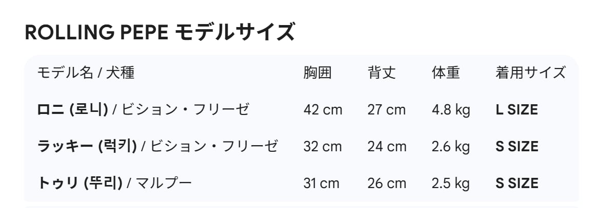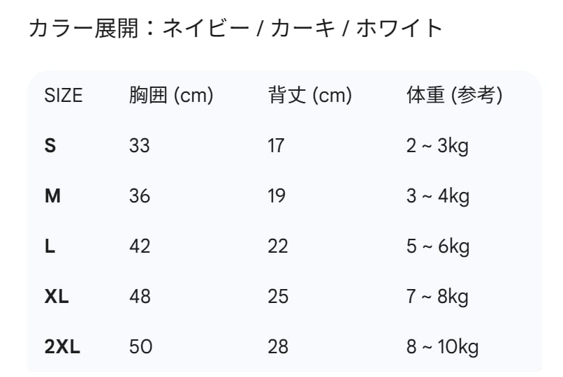 詳細サイズ表を必ず確認し、ワンちゃんに合ったサイズをお選びください。