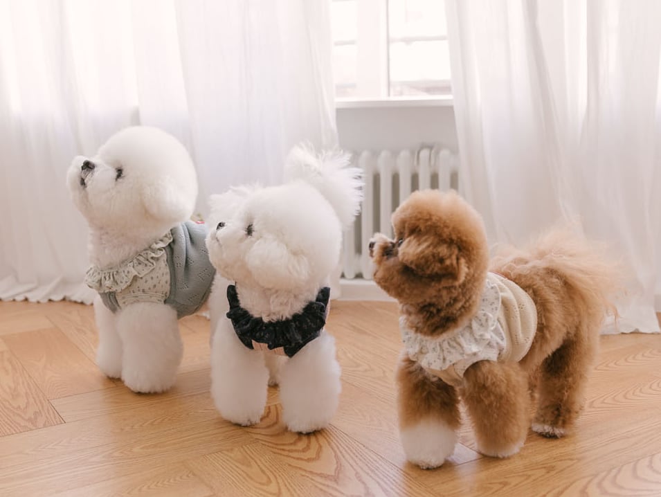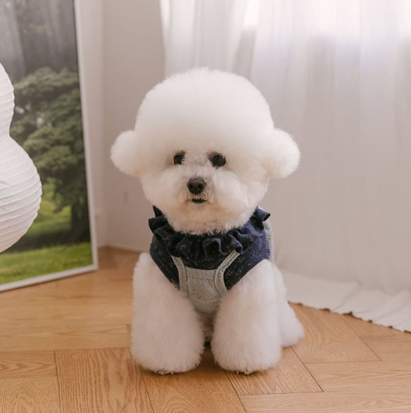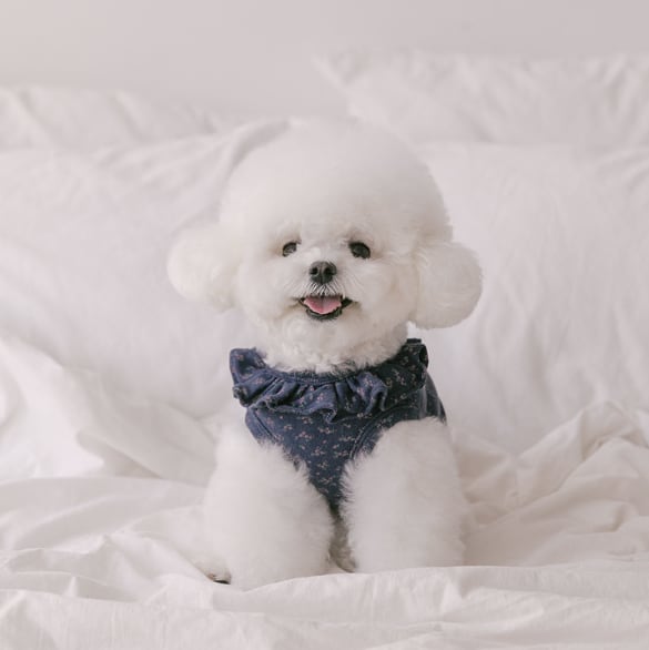 首回りに沿って自然に広がるフリルディテールが、ワンちゃんの顔立ちをより柔らかく見せてくれます。日常でも写真の中でも、パッと目を引くポイントになります。