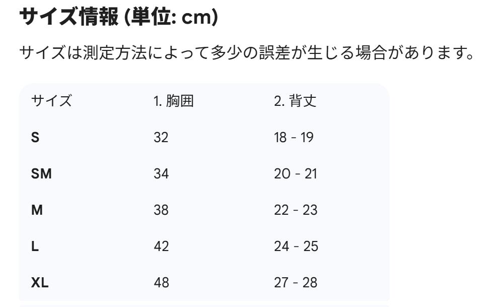 サイズ選びはジャストサイズでの購入をおすすめします。