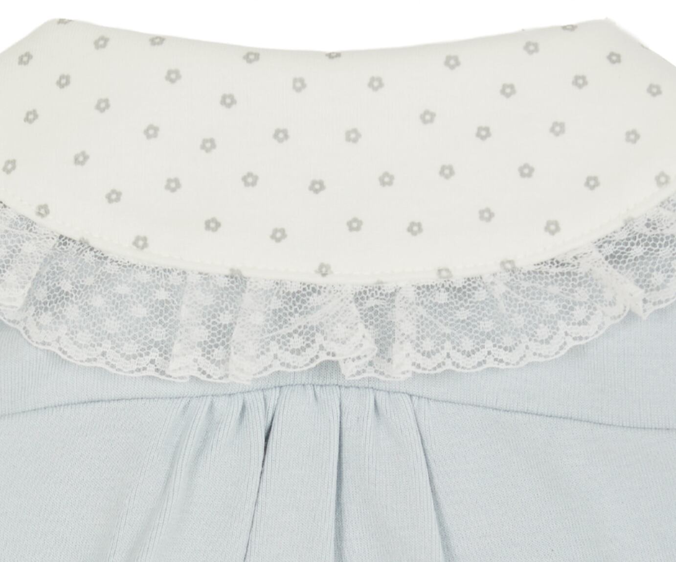 ・フレンチムードのレースディテールをプラスしたネックカラー